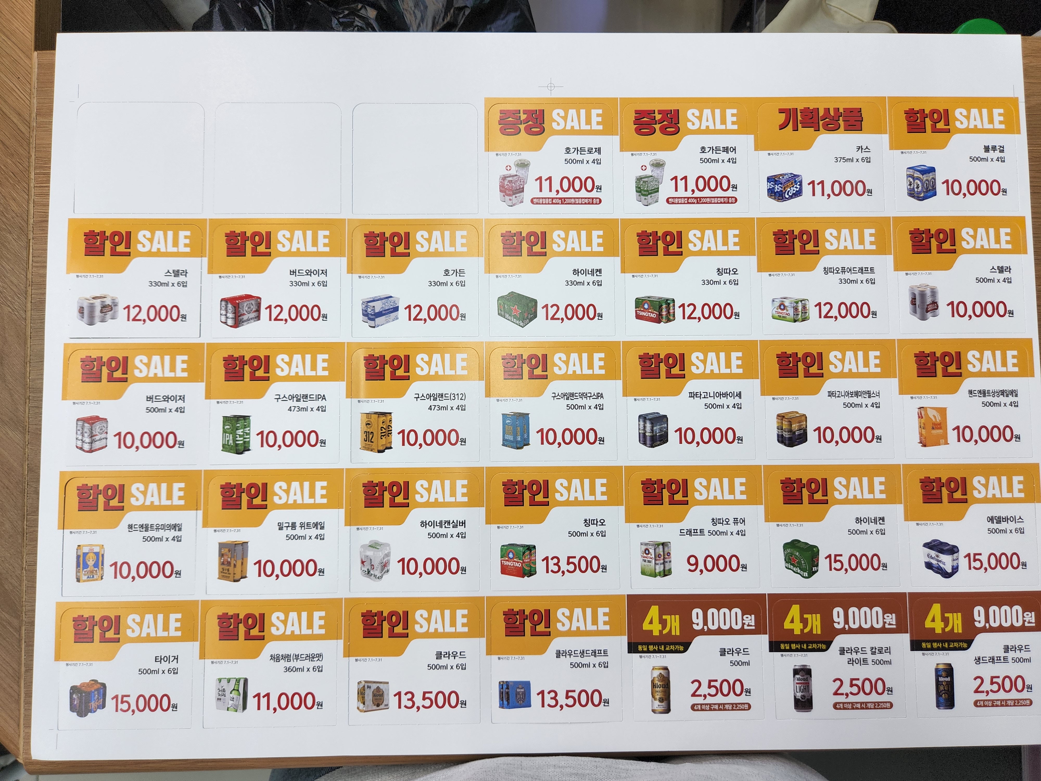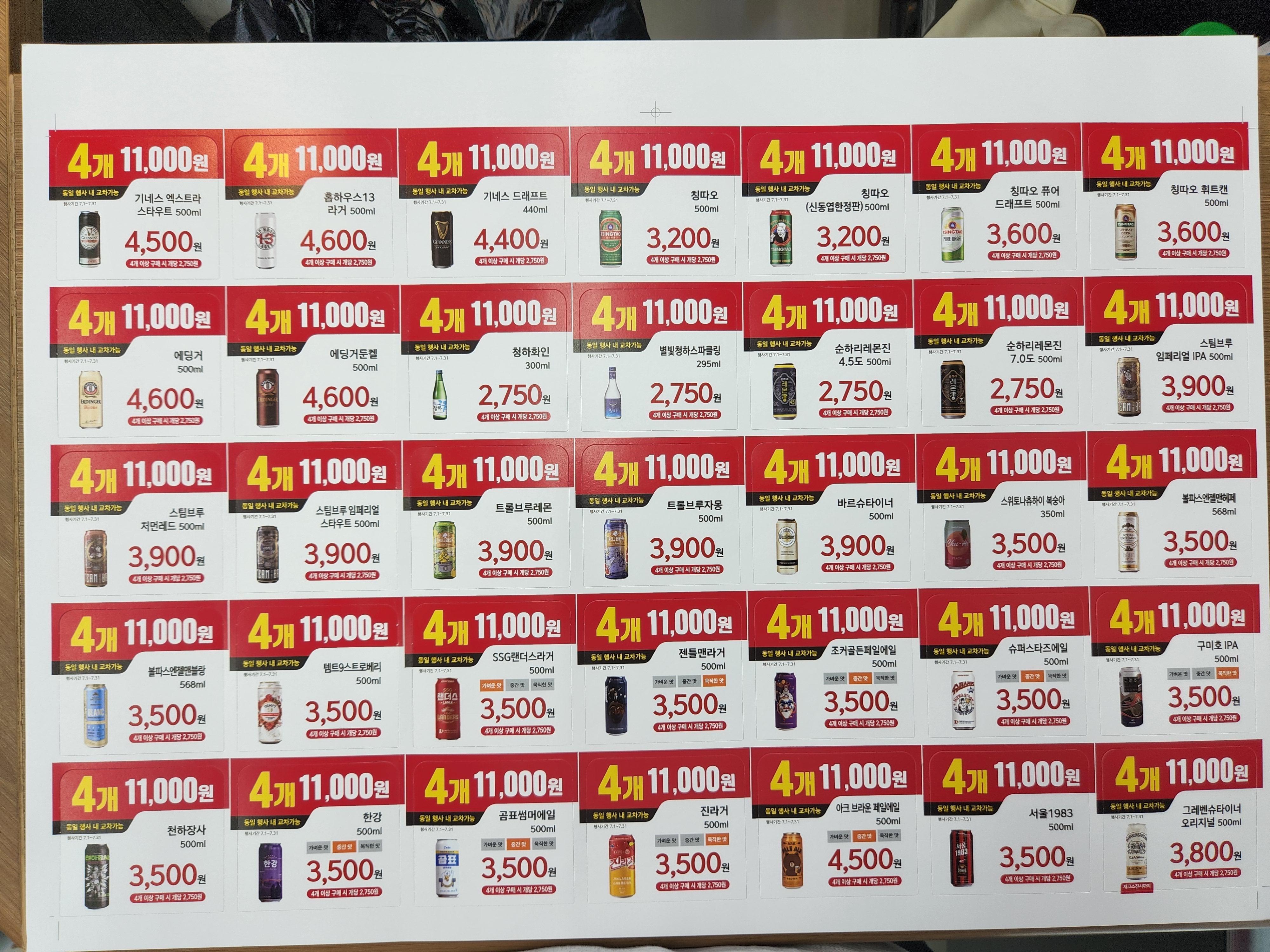 710ML의 맥주 그리고 6개 9900원 종류의 맥주들은 위에 이미지를 참고면 된다.
