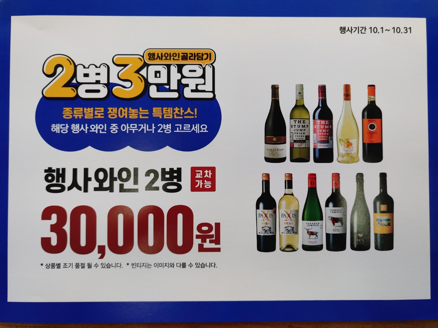 10월의 와인 설명 및 2병 2만원 3만원 제품은 위에 이미지를