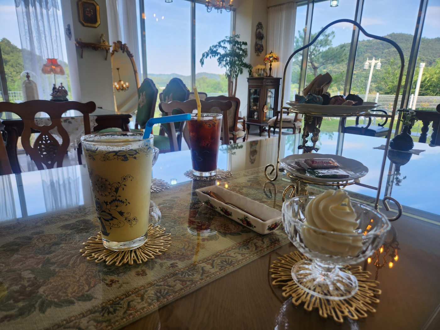 이 카페의 장점이라고 하면 넓은 마당과 조용한 주위환경으로 그리고 카페 뷰 맛집입니다.